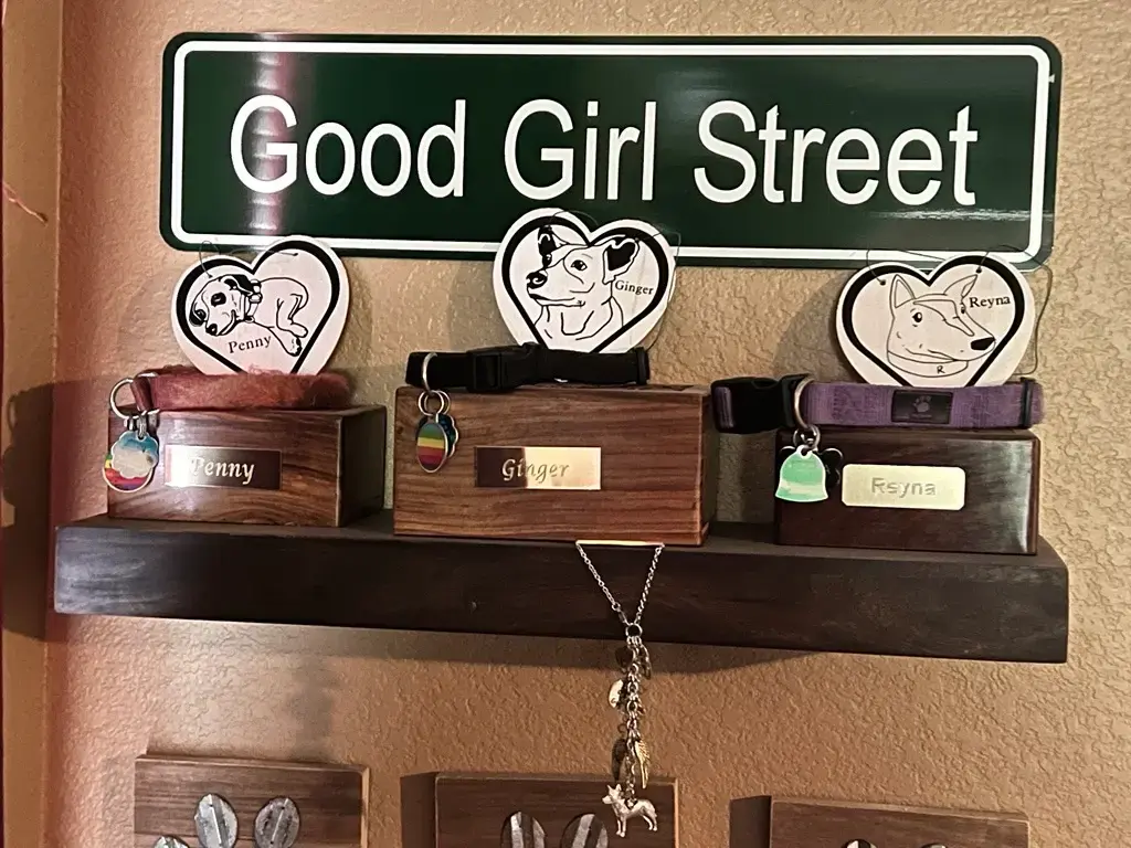 Today, I remember and celebrate the many pets who shaped my life. Suzie and Prince, the poodles of my childhood. Misty, a Dalmation who saw me through my middle school years. Sugar and Candy, two tiny teacup poodles who loved to burrow under the covers in high school. Sybbil, Reyna, and Ginger, a lively trio of Australian Cattle Dogs who introduced me to the breed I still adore today. Leopold, a fluffy Chow mix with a heart as big as his frame. And Penny, the fiercely independent Dachshund who eventually melted into the warmth of our home. There is a spot in my living room, called Good Girl Street—named after the excitement my dogs always get when they hear the words 'Good Girl Treat'—where I remember and honor these important parts of my life and my family every day.